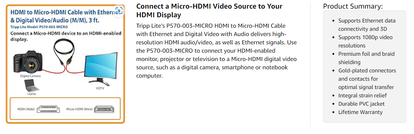 The P570-003-MICRO comes with a lifetime warranty. It’s manufactured in compliance with strict RoHS specifications, reflecting Tripp Lite’s commitment to environmental responsibility.