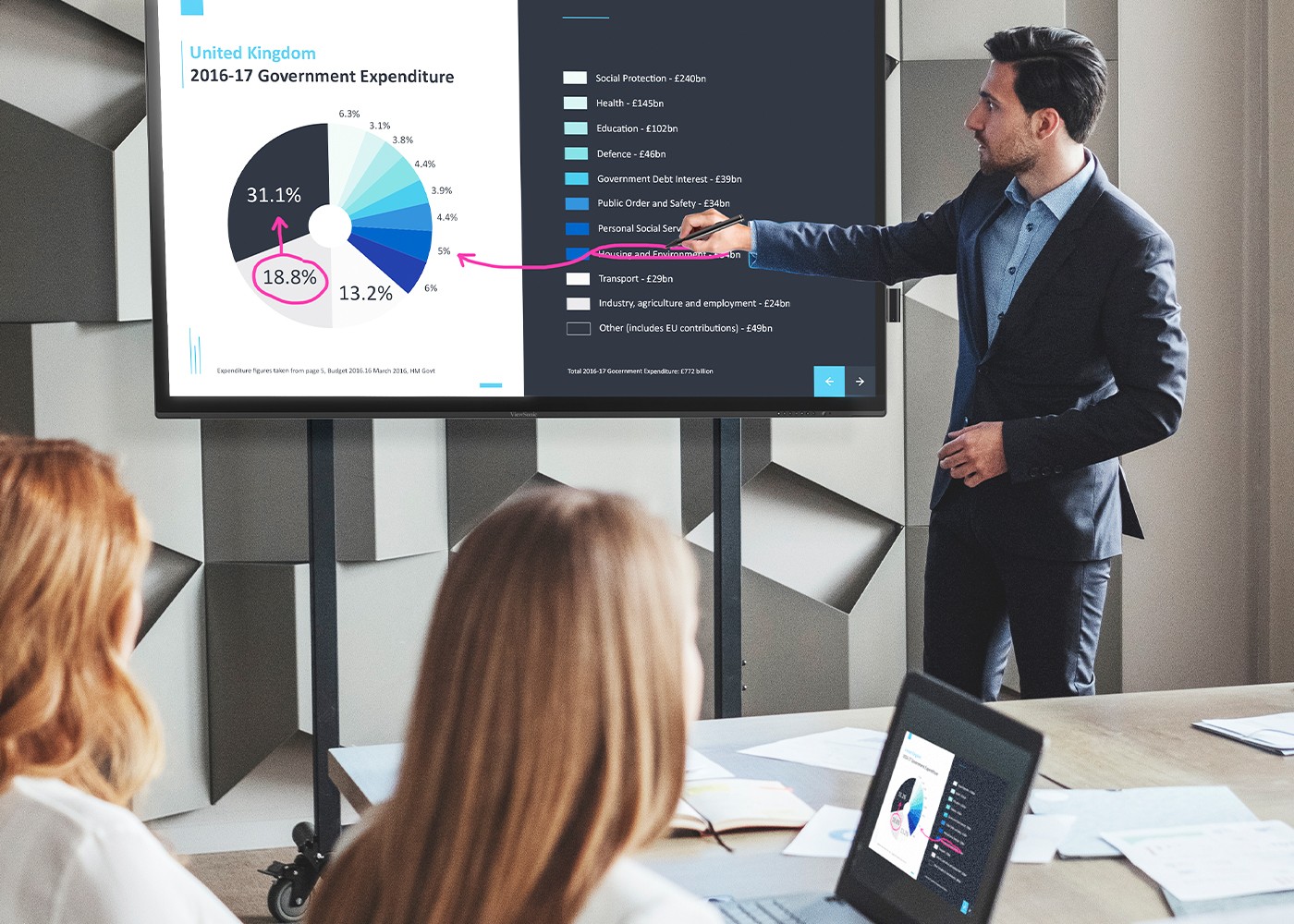 The host can remotely access and control the presenter’s device via the ViewBoard Touch Back Control, thus sharing control of the presenter’s device. Any changes made will be mirrored to all linked displays.