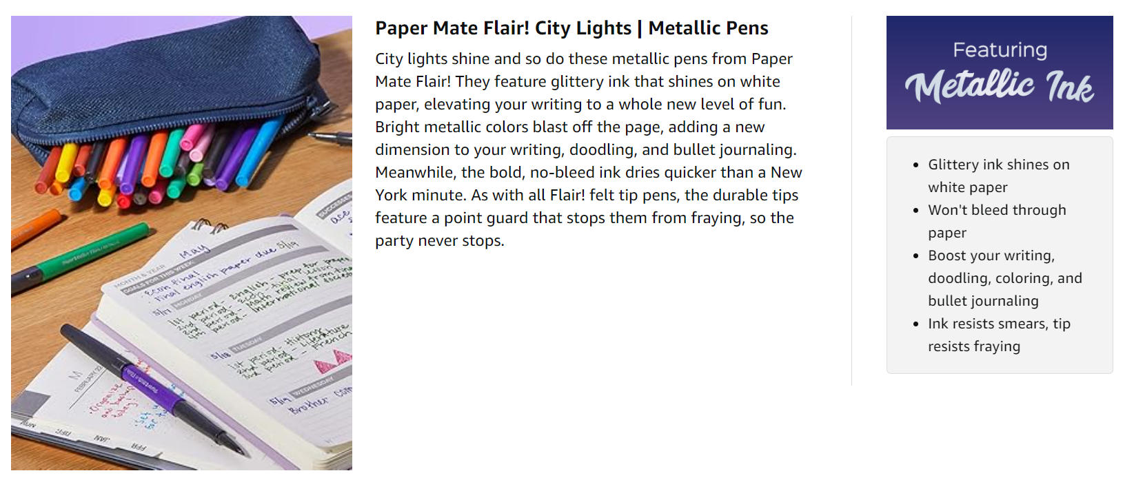 Paper Mate Flair pens are known for their range of colors, and each pack of metallic pens is no different!