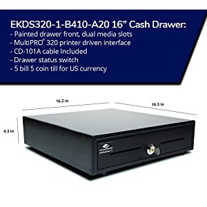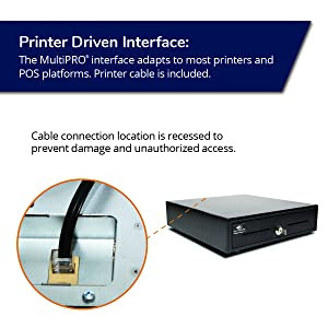 Equipped with APG’s MultiPRO 320 interface that is compatible with all 24V printer driven POS systems. Please note a connection cable is included with purchase.