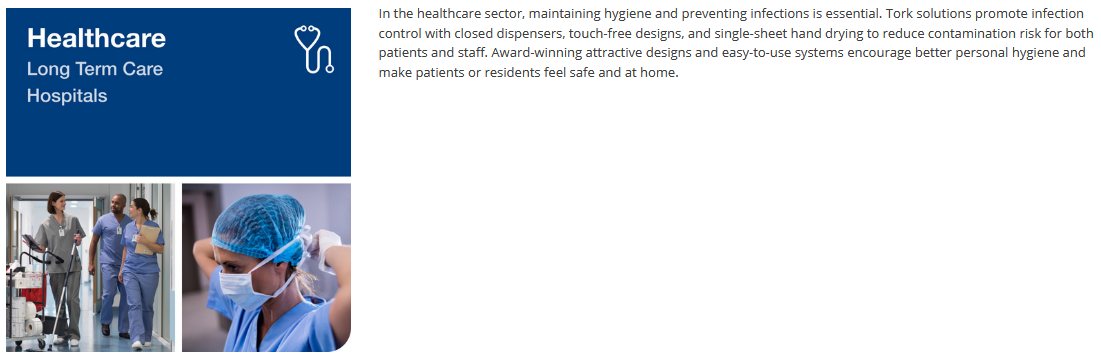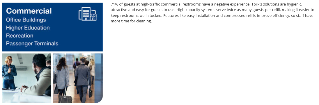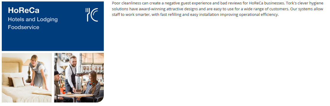 We have products and services that improve the work environment, and we are dedicated to raising hygiene standards for everyone away from home.