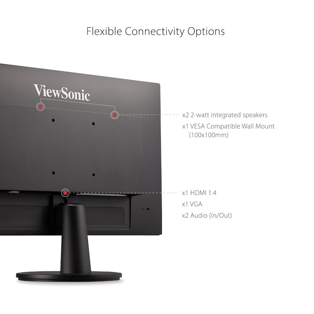 With flexible connectivity, wide-angle viewing, and amazing screen performance, the ViewSonic ® VA2447-MH delivers solid multimedia features and a sleek design at a great value. Featuring frameless MVA panel technology, the VA2447-MH delivers stunning brightness and contrast at nearly any viewing angle. A minimalistic design, edge-to-edge screen, and frameless bezel make this an ideal monitor for nearly seamless multi-screen setups. Whether for working at the office, or enjoying entertainment at home, the VA2447-MH features an HDMI port and an included HDMI cable for flexible connectivity to PCs, laptops and gaming consoles. A three-year limited warranty, along with one of the industry’s best pixel performance policies, makes the VA2447-MH a great overall value choice.