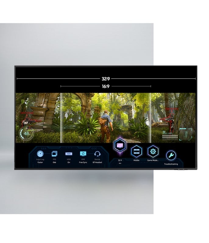 Expand your view with multiple aspect ratios from 21:9 to 32:9 with Super Ultrawide GameView. Quickly optimize game settings with an on-screen menu that lets you check input lag, FPS, HDR, wireless headset settings and more through an easy-to-access game bar.
