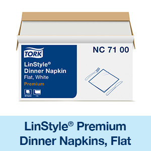 Tork LinStyle Dinner Napkins add an elegant touch to your establishment. They deliver the feel of linen without the cost. With these cloth-like napkins, you can avoid laundering and replacement costs without compromising on quality. Premium Dinner Napkins are stronger, bulkier, and more absorbent than traditional paper styles, too. Custom printing allows you to personalize the napkins to suit your establishment’s needs.