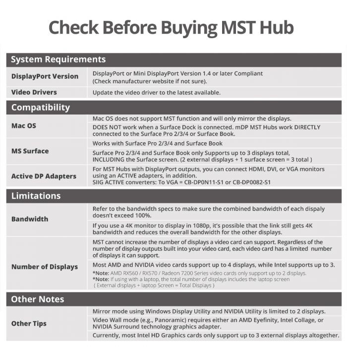 - Connect up to four DisplayPort displays to single DisplayPort 1.4 output with Multi-Stream Transport (MST) technology to boost your productivity