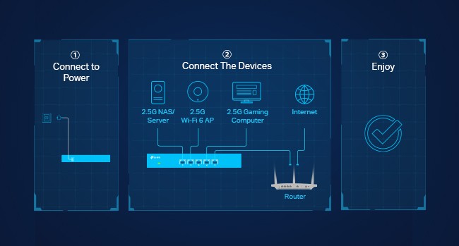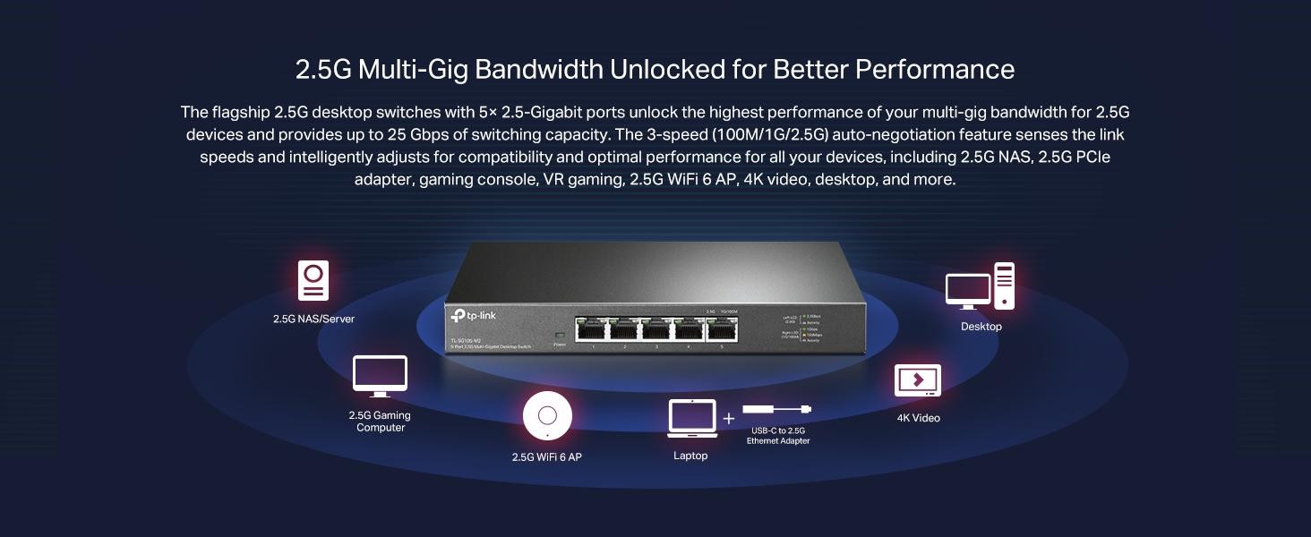 Expand the 2.5GE LAN ports of your WiFi 6 routers and connect more devices—all running at max 2.5Gbps.