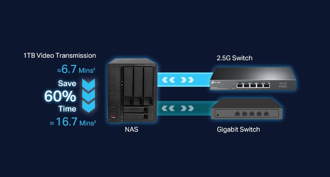 Immediately back up and store computer files to NAS storage with increased transfer speeds, never waste time.