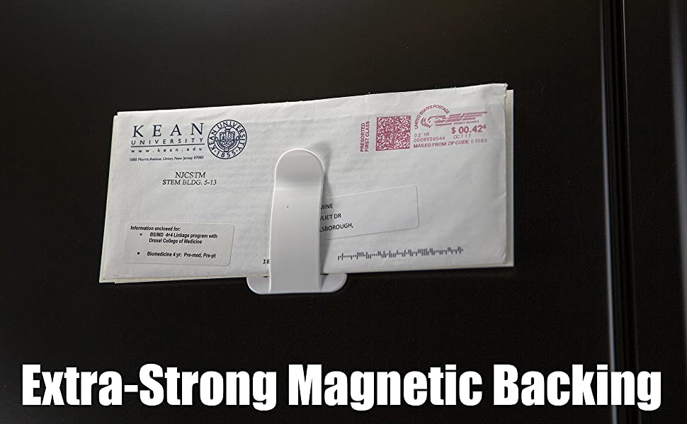 Strong magnetic backing holds envelopes, notes, coupons and masks.