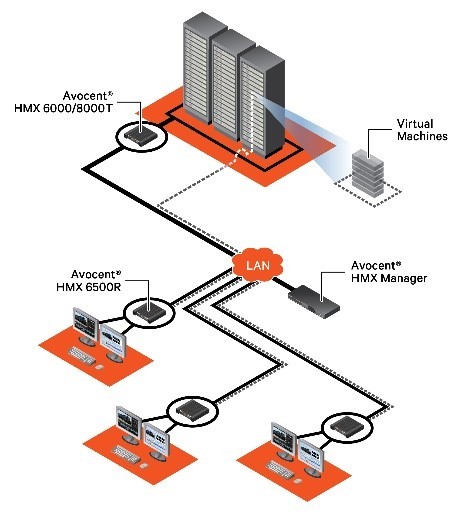 The Vertiv Avocent HMX KVM Systems can benefit environments where the distance between the user and the computer cannot be limited, such as campuses, arenas or stadiums. These high performance KVM systems make it easy for cooperative sharing of computers while updating and multicasting video and key information to any receiver destination. Any screen application that requires rapid updating can easily be managed through the matrix system by authorized, verified users.