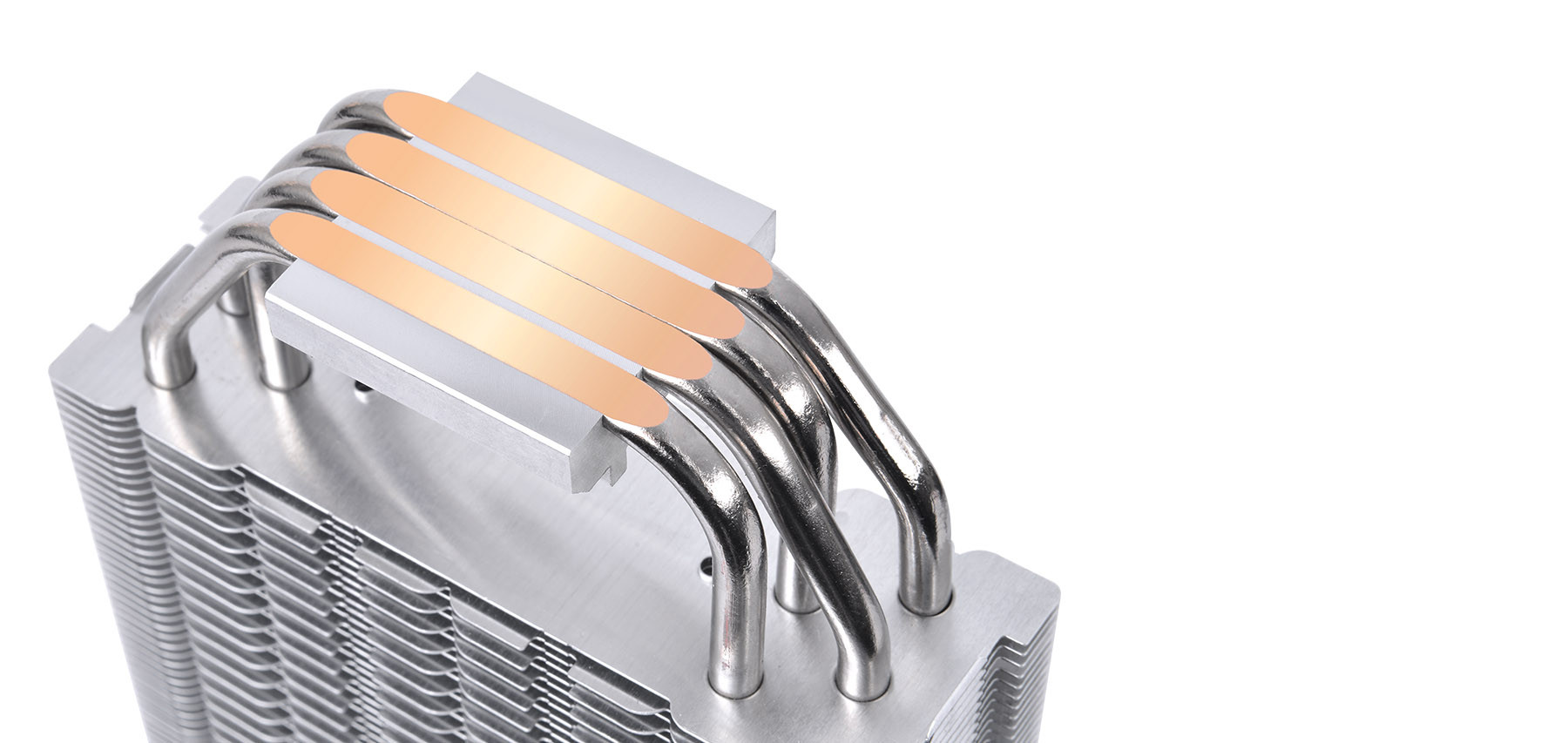 TOUGHAIR 510 is a single tower duel fan designed air cooler with 4 heat pipes runningthrough the fins, the U-shape heat pipes increase heat circulation creating better heat dissipation in yoursystem and supports up to 180W.