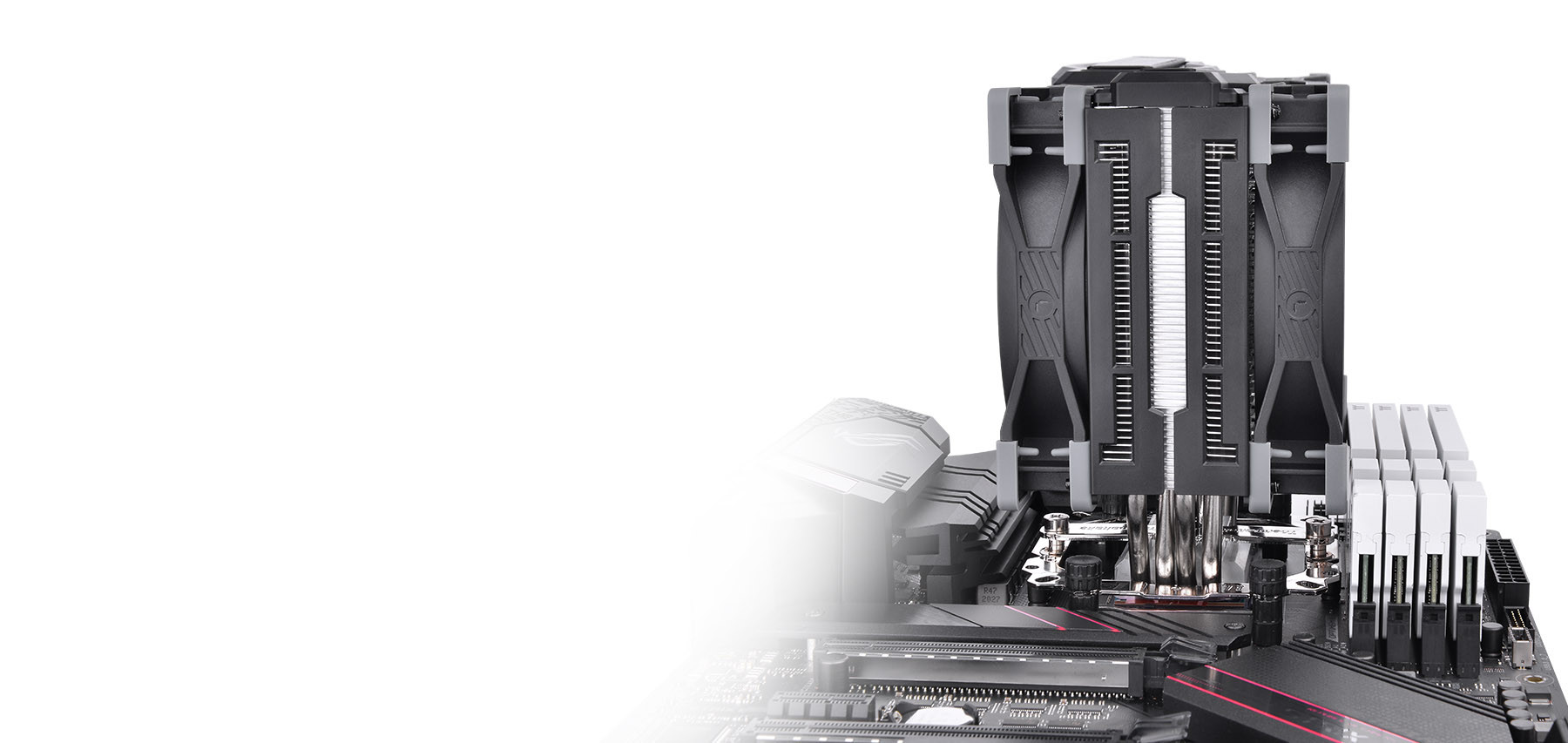 TOUGHAIR series utilizes high static pressure fans, which leverages the TOUGHFAN 12design and boosts the fan speed to 2000 RPM, providing a new level of cooling performance to our CPU cooler.