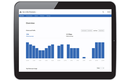 Traditional captive portals are hosted in the local device with extremely limited space for graphics, logos and text. Linksys Cloud Manager 2.0 does it better with a built-in captive portal editor that allows you to upload logos and graphics of any size, so the only limit is your imagination. Easily create a terms of service agreement or lock WiFi access with an extra passcode, at no additional cost.