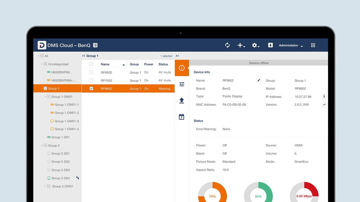 Remotely push updates, install apps, and generate device analytics for all your BenQ displays via a single easy-to-use device management platform