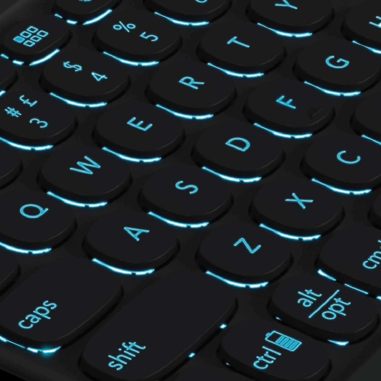 The Pro keyframe allows clean, pre-cise keystrokes. Backlighting, in seven different colors, makes typing easy in low-light conditions.