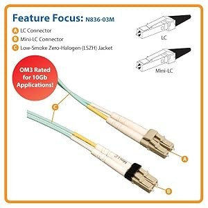 The N836-03M has dual Mini-LC/LC connectors that are widely compatible and thoroughly tested to meet stringent insertion loss standards.