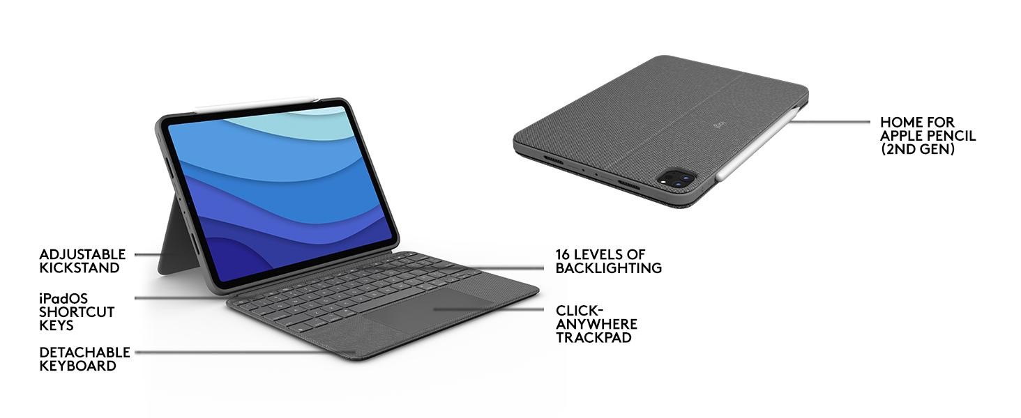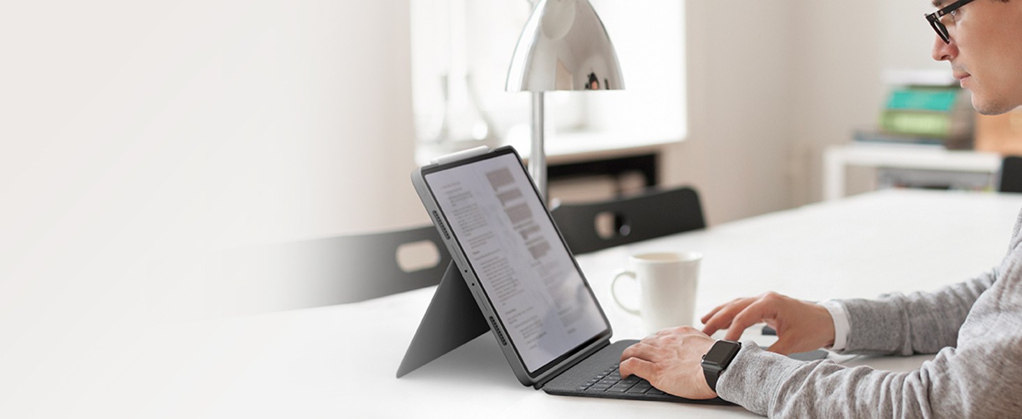 Combo Touch is the thinnest keyboard case with trackpad we’ve ever designed. *Compared to Logitech keyboard cases with trackpad released in 2020.