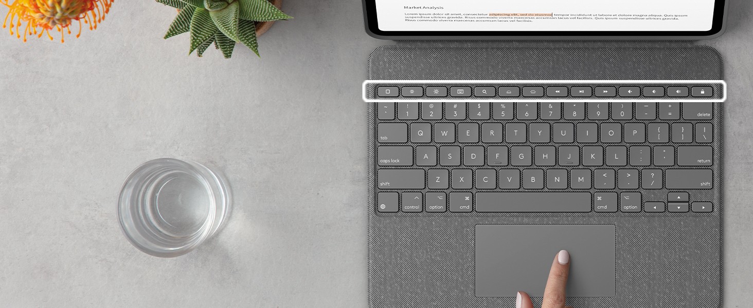 Enjoy quick, accurate typing with well-spaced keys and a full row of iPadOS shortcuts.