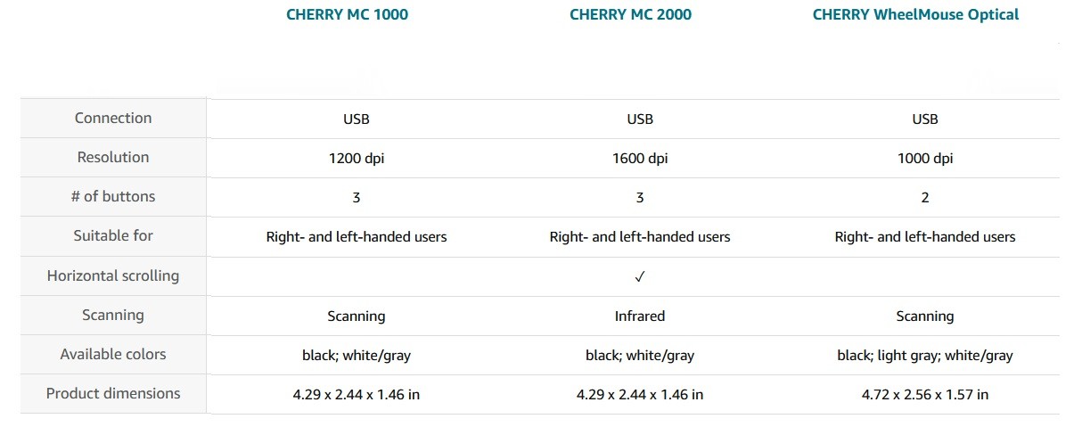 The wired CHERRY WheelMouse Optical Mouse with 3 buttons is suitable for both right-handed and left-handed users. The computer mouse comes in a timeless, symmetrical design