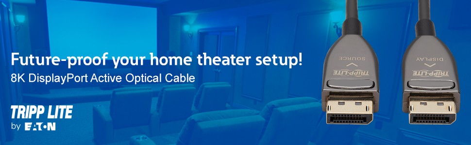 This DisplayPort fiber optic cable allows you to connect a DisplayPort monitor compatible with 8K audio/video signals to an 8K desktop, laptop or tablet computer with DisplayPort video output. Backward compatible with all your existing DisplayPort devices (including Blu-ray players, game consoles and 4K TVs), the P580F3-15M-8K6 is ideal for future-proofing your high-definition or UHD A/V application in anticipation of an 8K upgrade.