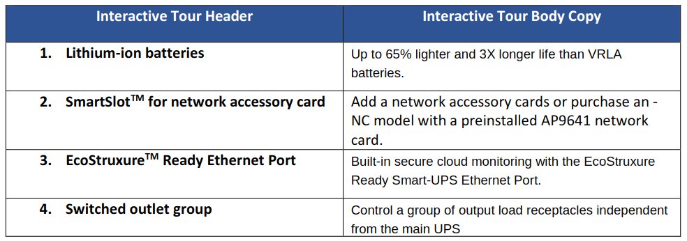 Smart-UPS Lithium-ion batteries last 3x longer than VRLA batteries. When you don’t have to replace the battery for 8-10 yearsas you would with a Lead Acid battery you save. Smart-UPS Lithium-ion UPS are up to 65% lighter making installation easier.