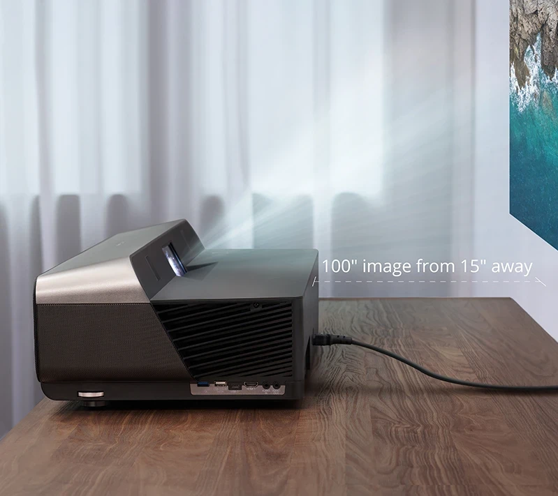 With lamp-free projection and an ultra-short throw lens, this projector can be placed just inches away from a wall or screen and deliver an immersive cinematic experience. It’s a perfect alternative to TVs and commercial displays that can’t match the screen size or image quality.