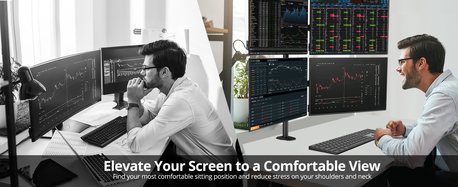 Multi-monitor setups for stock traders, financial analysts, or data scientists to monitor real-time data, graphs, and multiple platforms simultaneously