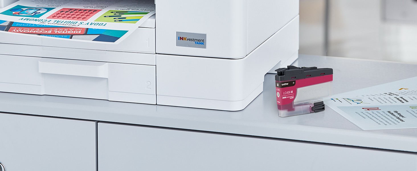 The Brother Genuine LC406M magenta INKvestment Tank ink cartridge provides high quality, sharp inkjet prints you can consistently rely on for up to 1,500 pages(1).