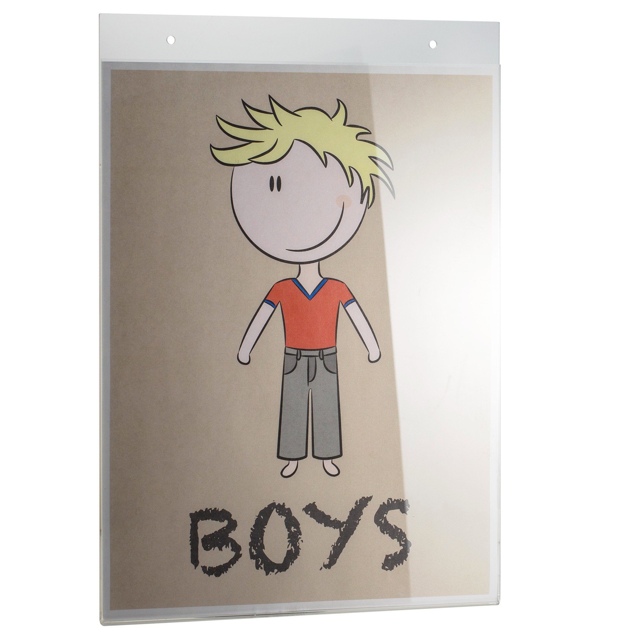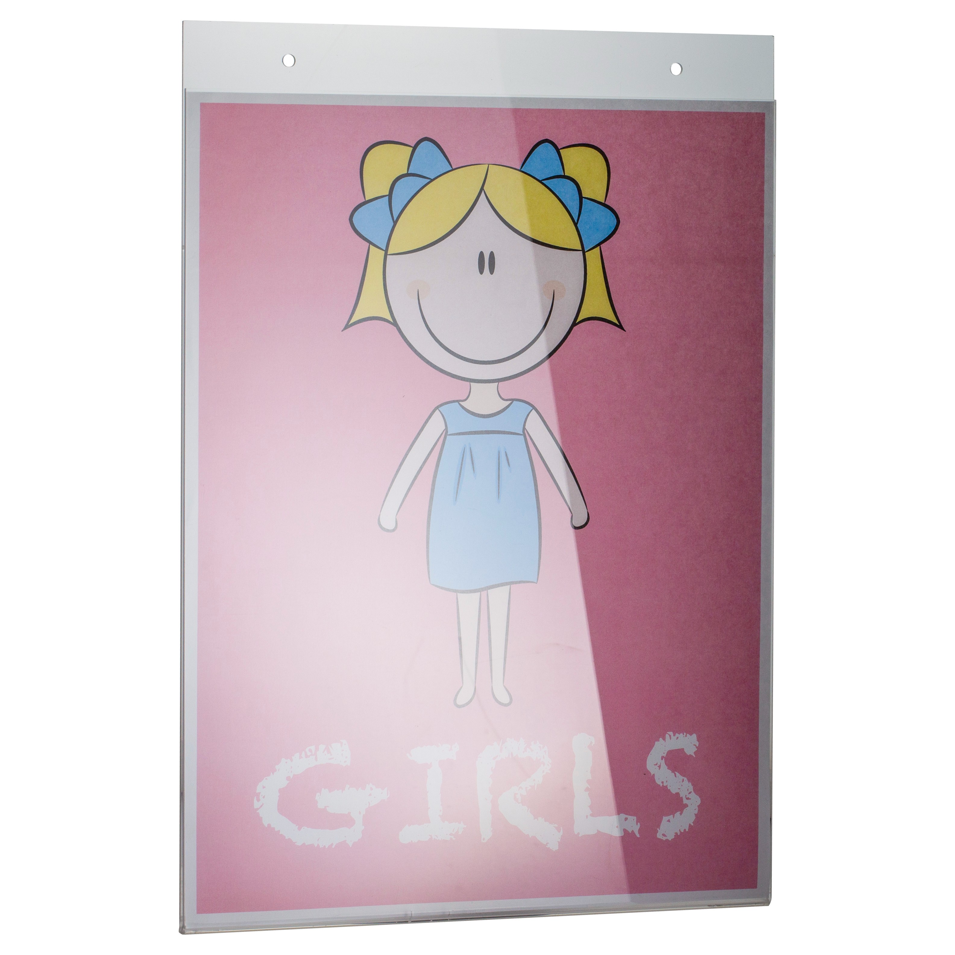 Vertical wall mount sign holder for 8½” x 11” holds signs or documents.