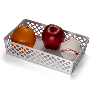 Handy office or home catch-all baskets for all kinds of supplies. 10 1/16” width x 6 1/8” depth x 2 3/8” height. White. Pack of 2.