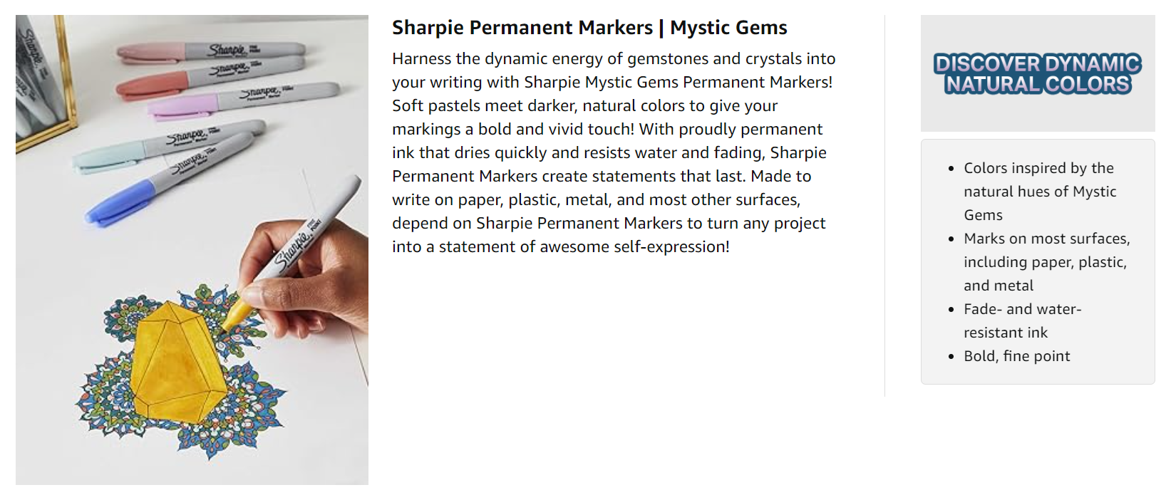 Unique ColorsSoft pastels pair with dark, natural colors to give these markers dynamic energy inspired by the natural power of gemstones and crystals. |