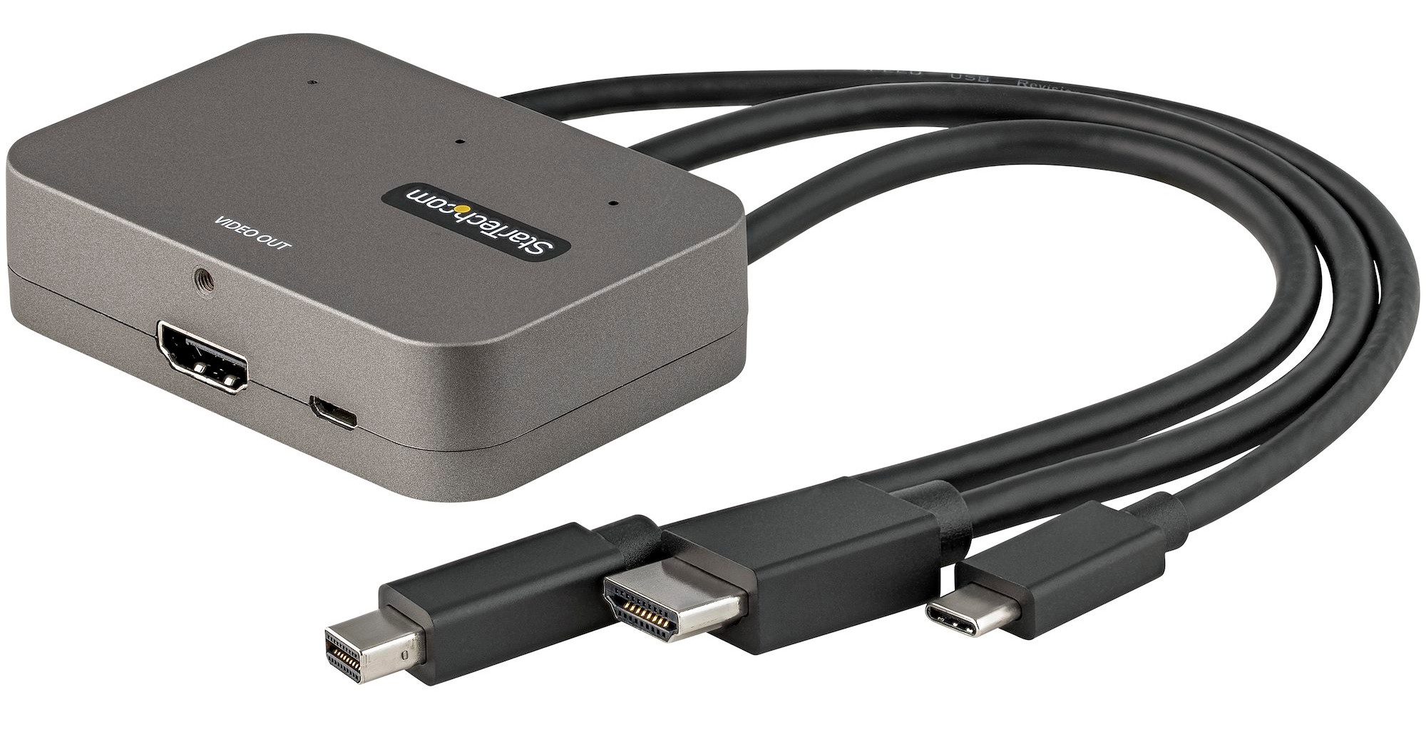 This multiport to HDMI adapter provides multiple host options, connecting your USB-C™; HDMI® or Mini DisplayPort™ device to an HDMI display. This digital AV adapter supports High Dynamic Range (HDR) and provides sharper images with enhanced video.