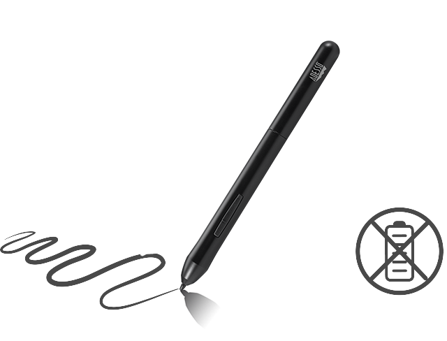 The stylus works just like a real pen, no battery and no charging required!