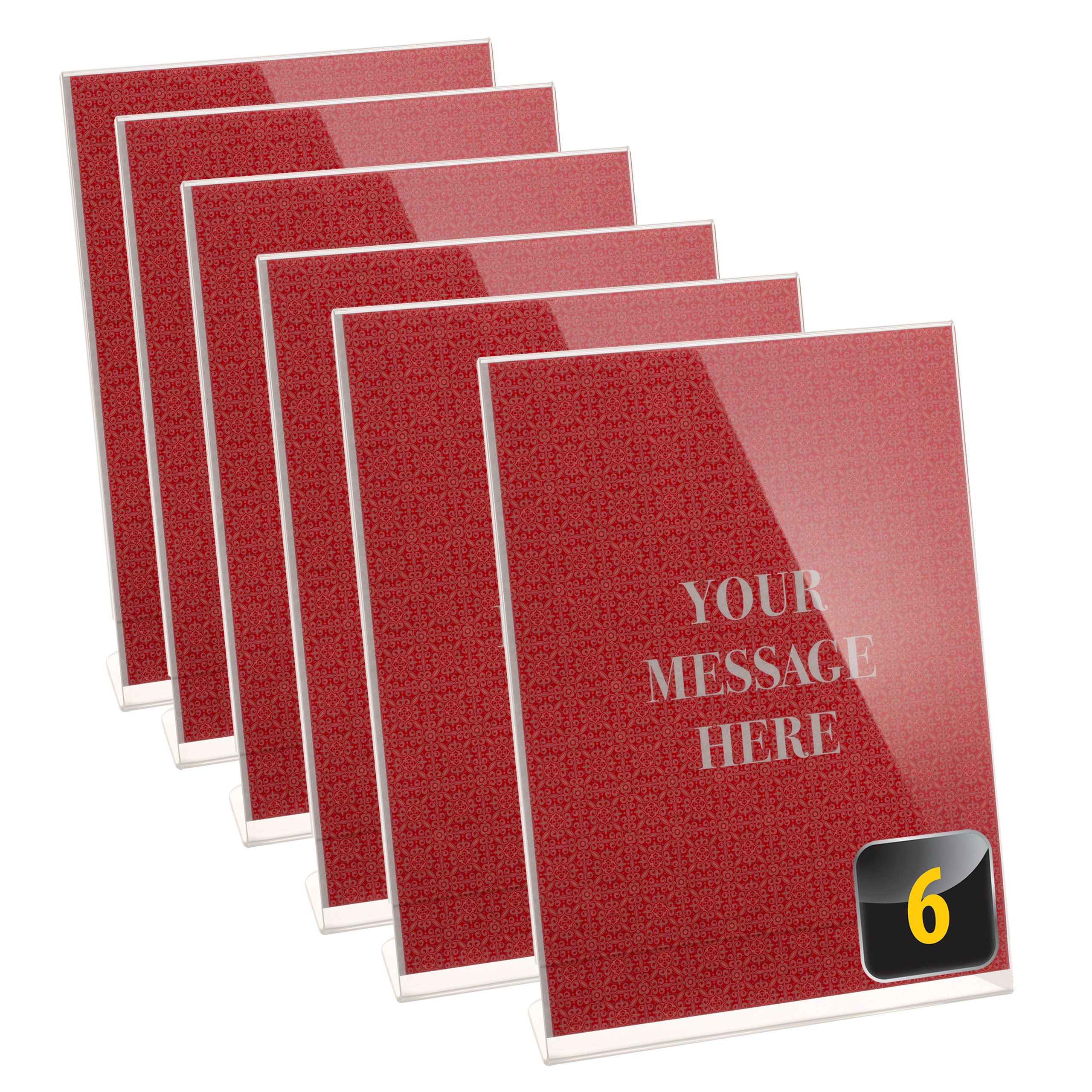 Self-standing 8½” x 11” slanted sign holder provides angled view.