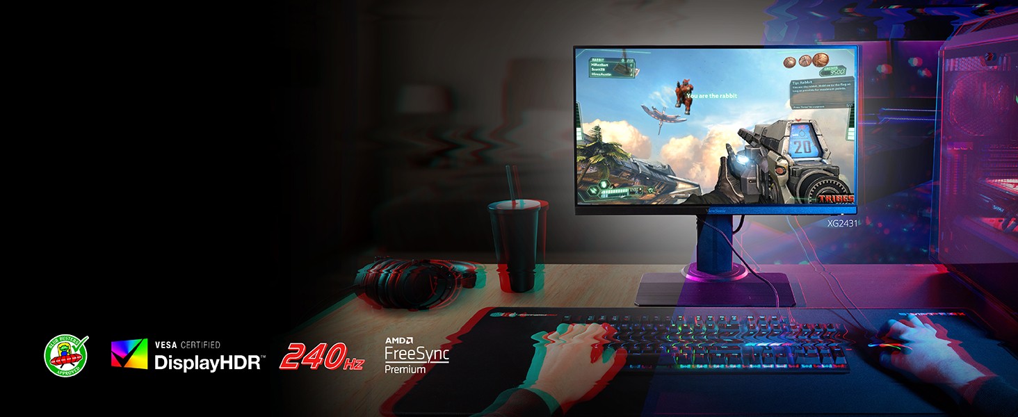 Engineered for gaming, the ViewSonic® XG2431 is a 24” Full HD monitor that features the perfect blend of speed, control and color. An ultra-smooth 240Hz refresh rate pushes FPS gaming into new territory, enabling games to run at higher frames for incredible graphic performance. NVIDIA® G-SYNC™ Compatibility and AMD FreeSync™ Premium technology help create a pristine gaming experience with no lag or stuttering. Fast-IPS technology combines rich colors, amazing contrast and wide viewing angles, while also delivering up to 4x faster response times compared to traditional panels. The 0.5ms response time allows every input to be faster and more precise. Flexible connectivity via DisplayPort and two HDMI ports make connections to other peripherals or high-end graphics cards a breeze. The XG2431 is also equipped with ViewSonic’s exclusive ViewMode™ presets, which offer user-customized game modes for FPS, RTS and MOBA gaming.
