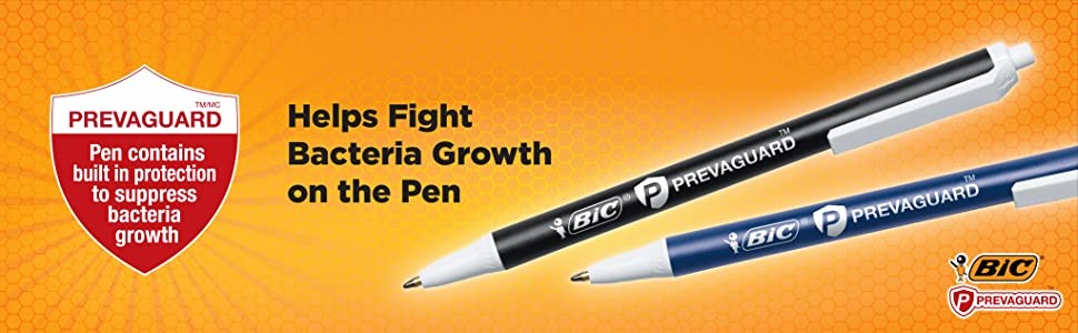 BIC Prevaguard Clic Stic contains an antimicrobial agent in the pen’s plastic components that helps protect the plastic on the pen by suppressing the growth of bacteria, molds, mildew and fungi –especially in high-moisture environments where those can thrive.