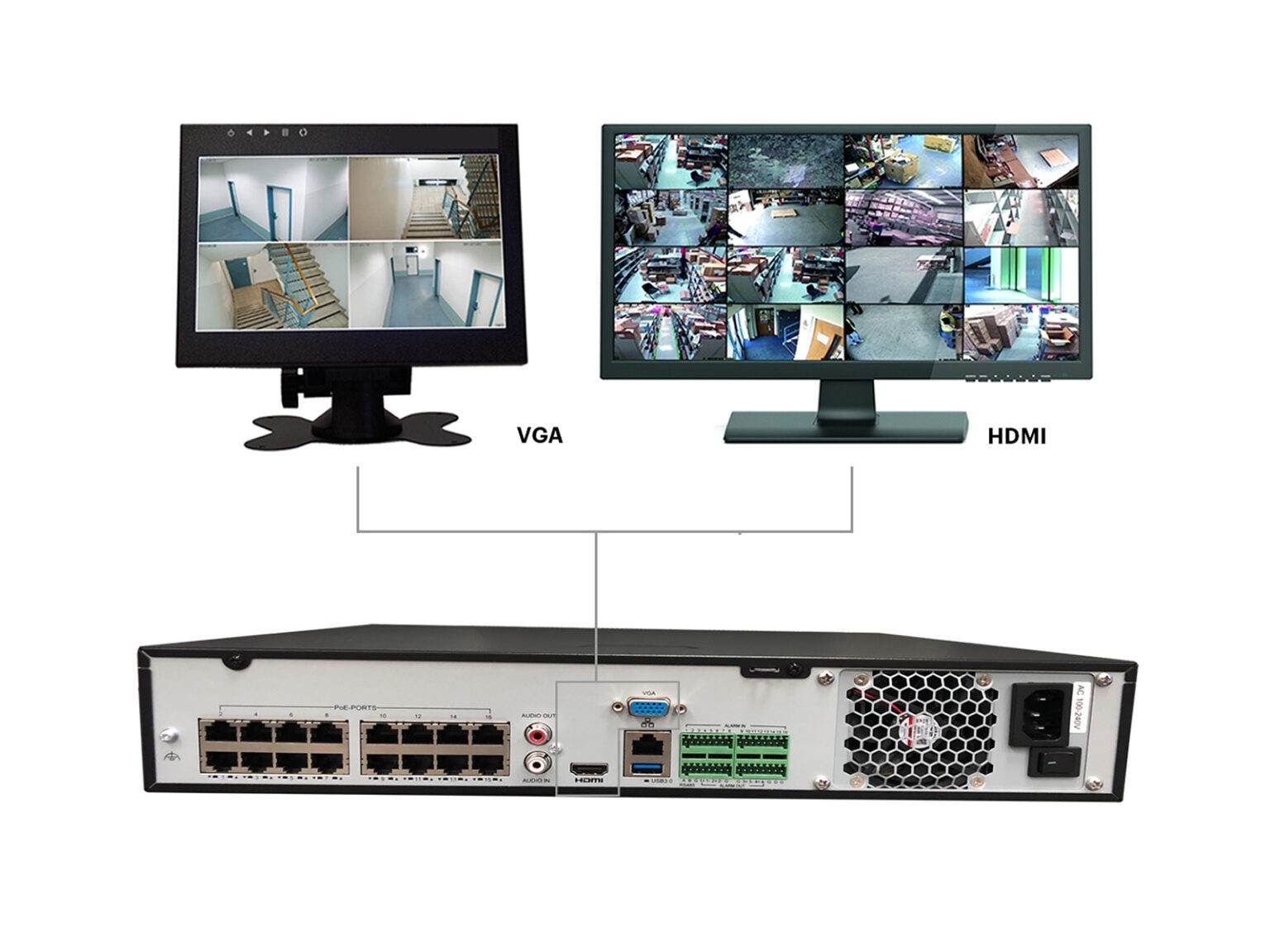 Provides simultaneous delivery of HDMI and VGA output for multiple monitoring needs