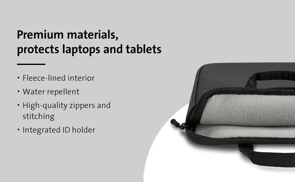 ● Securely holds laptops and tablets up to 12.5” (see product specications for sleeve dimensions)