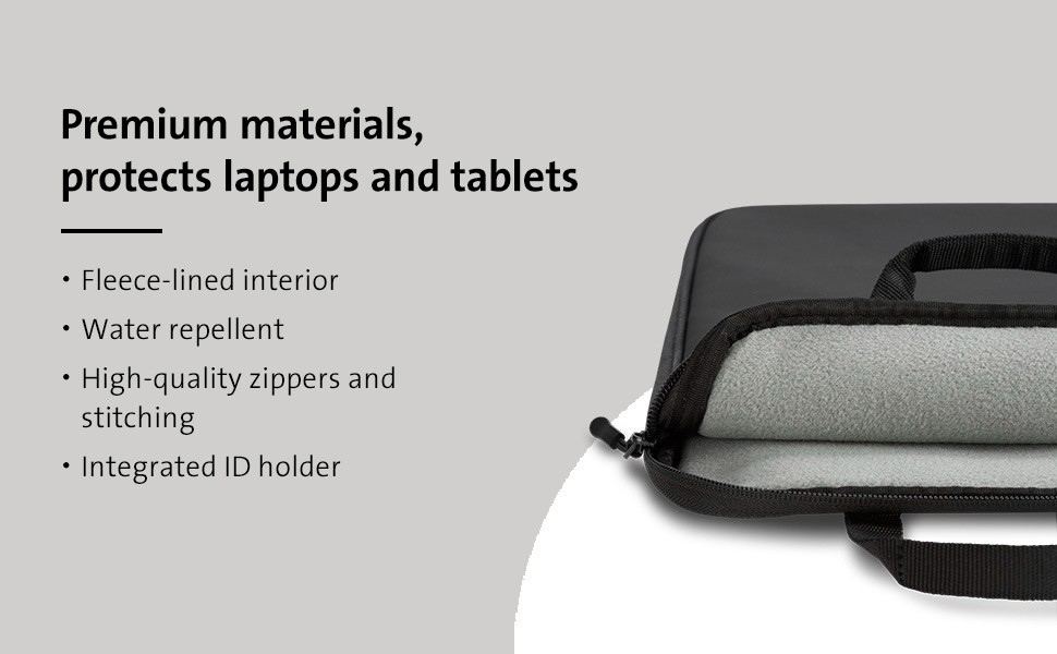 ● Securely holds laptops and tablets up to 14” (see product specications for sleeve dimensions)