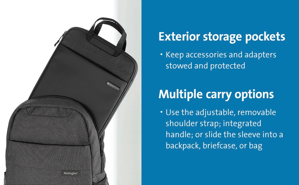 storage pockets keep accessories and adapters stowed and protected when not in use, while helping to avoid accidentally scratching or damaging the