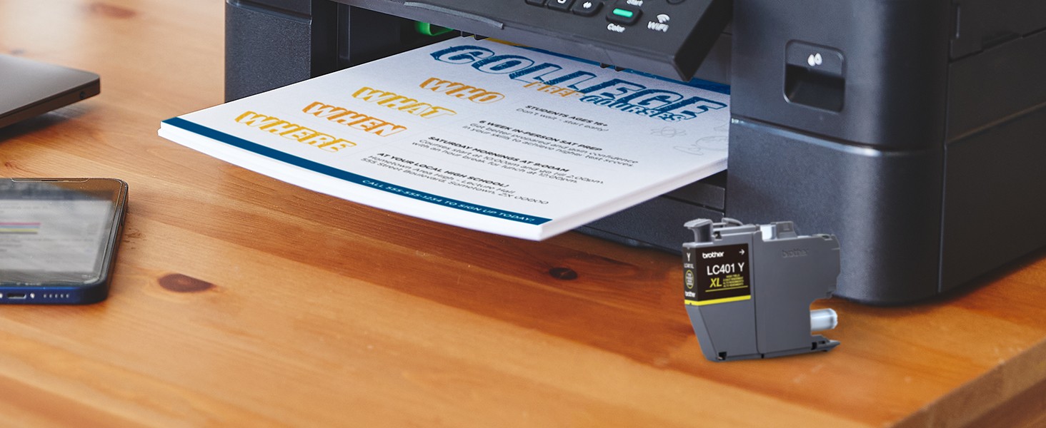 The Brother Genuine LC401XLY yellow ink cartridge provides bright colors and superior inkjet print quality you can consistently rely on for up to 500 pages(1).