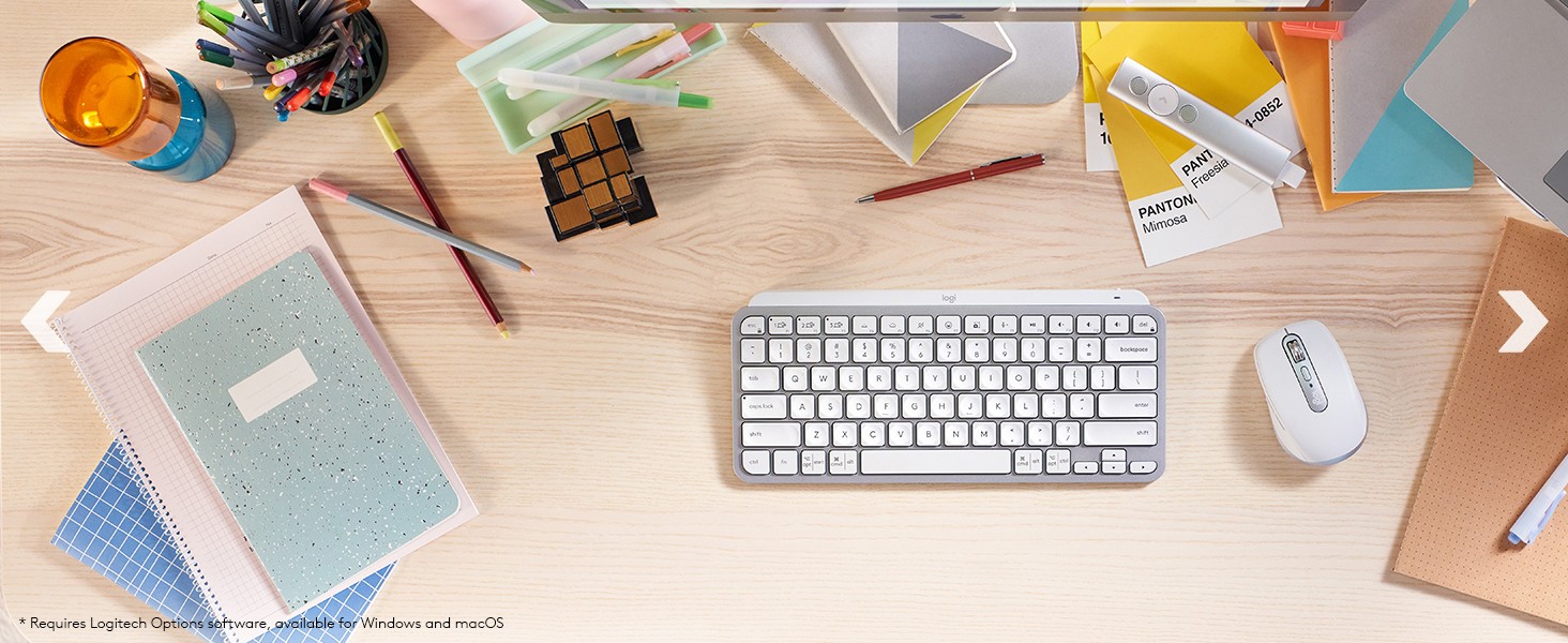 Team MX Keys Mini with MX Anywhere 3 for advanced functionality* and inspired design
