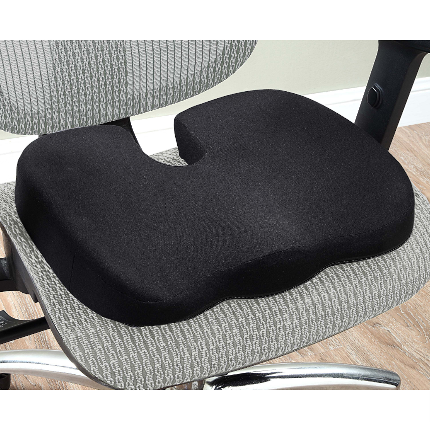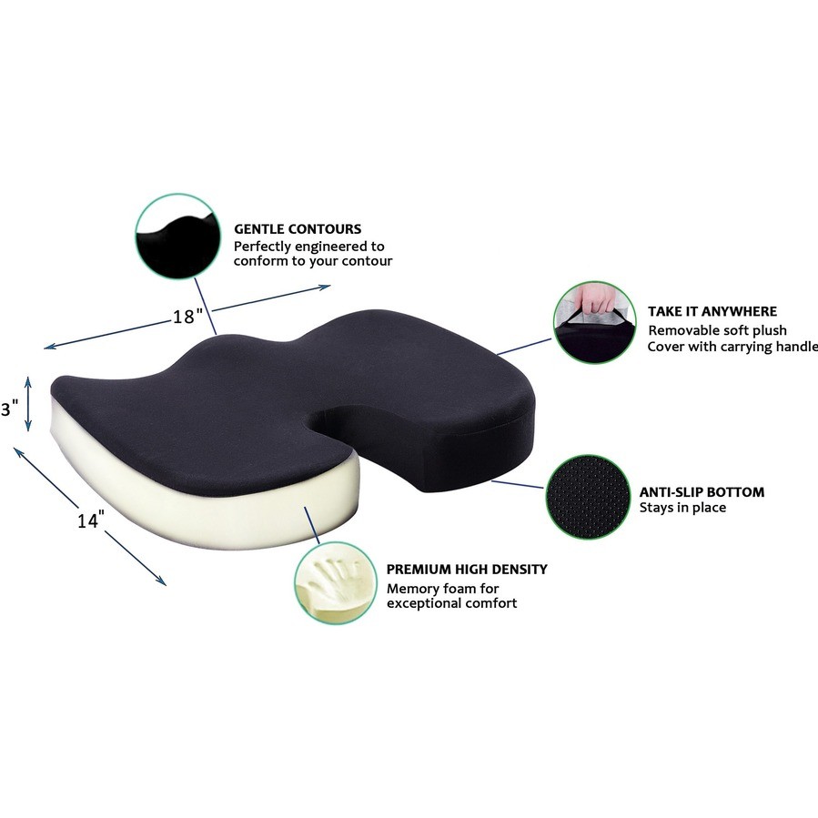 Butterfly-Shaped Seat Cushion features a cooling fabric with a cool-gel core that helps decrease your body temperature to provide maximum comfort during extended periods of sitting. Ergonomic design promotes healthy posture, improves circulation and relieves spinal pressure to help reduce the discomfort, fatigue and stiffness that can result from prolonged sitting. Its unique shape alleviates the pressure on your spine and supports sciatica relief by minimizing the contact between your tailbone and the seat cushion. Premium, high-density memory foam provides durable and professional structural support to maintain its shape beyond 80,000 uses. Machine-washable cover with quality zipper maintains its color wash after wash to keep your cushion looking new. Anti-slip fabric on the bottom prevents it from sliding using a silicone friction grip so you can sit with confidence. |