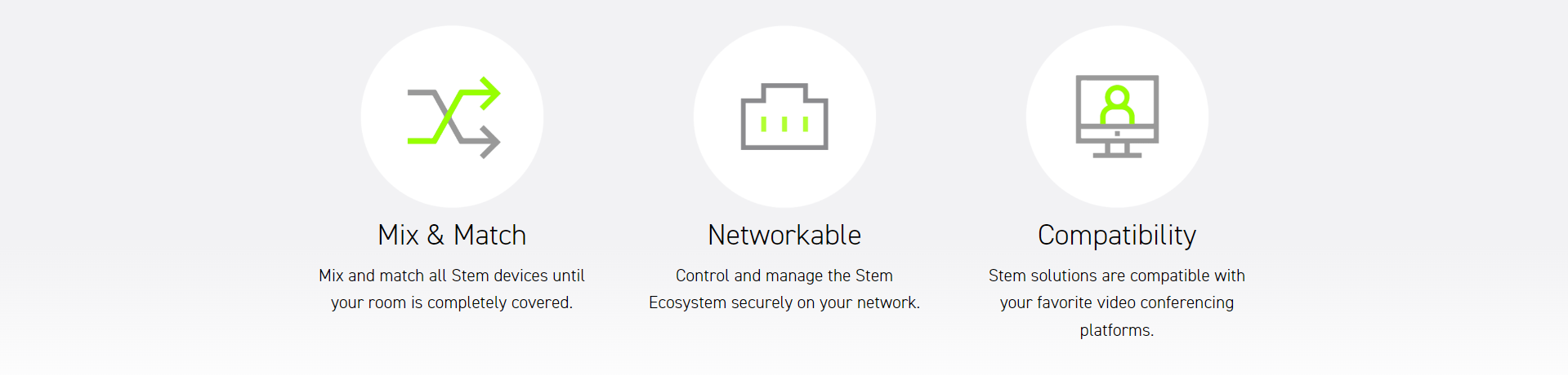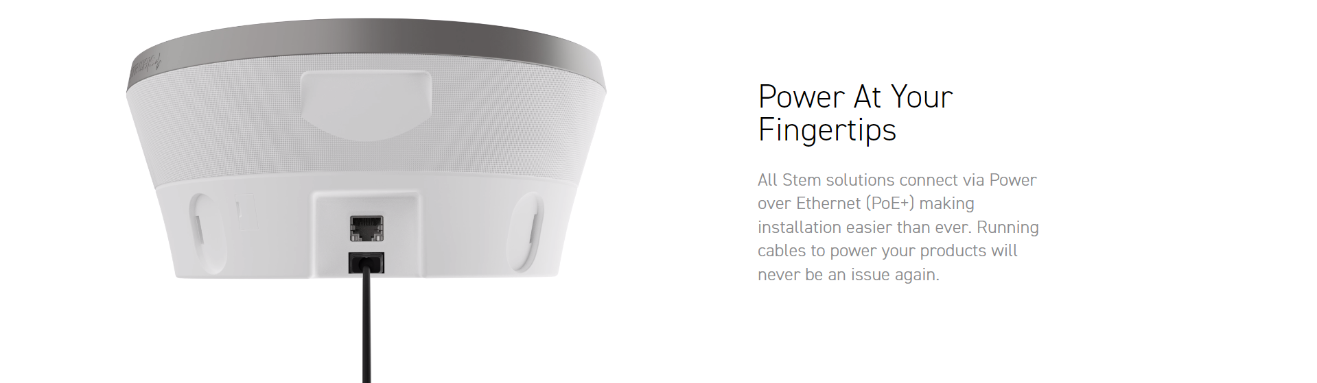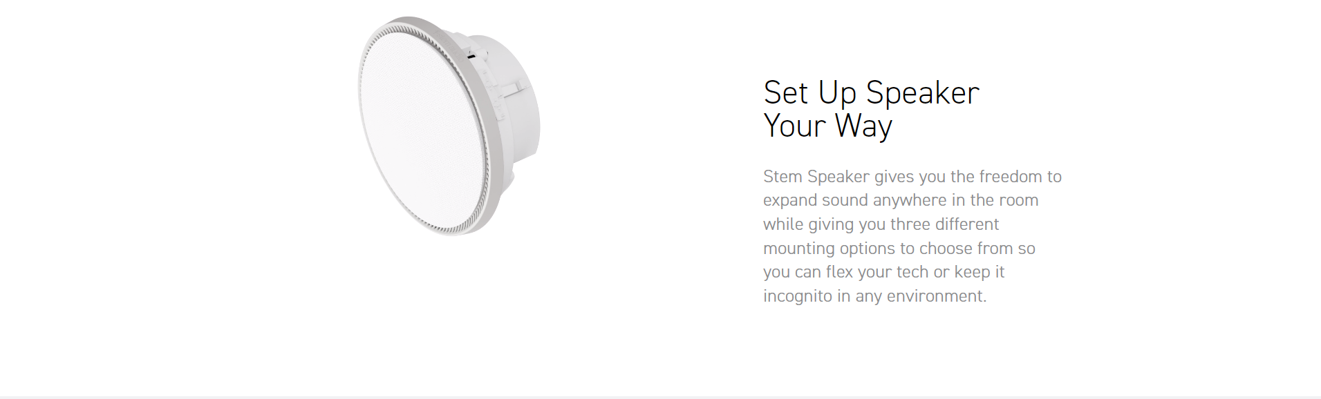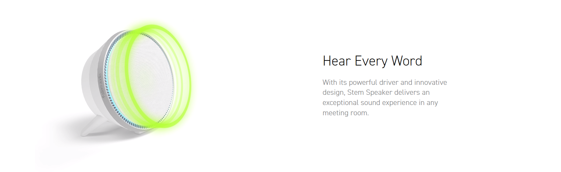 Stem Speaker's innovative design gives you the option to mount the device on the ceiling, wall, or table for ultimate flexibility. With its powerful driver and built-in technology, Stem Speaker delivers an exceptional sound experience in any meeting room. As an ecosystem device, you can mix and match devices until your room is customized to meet your needs.