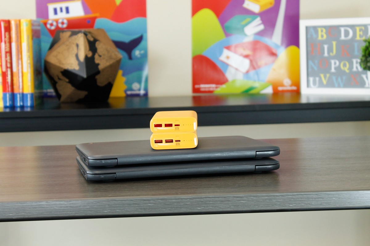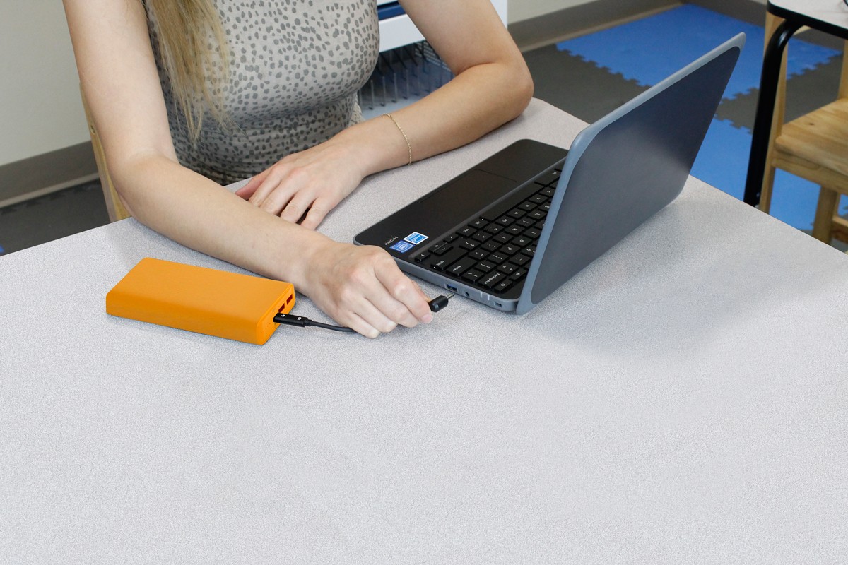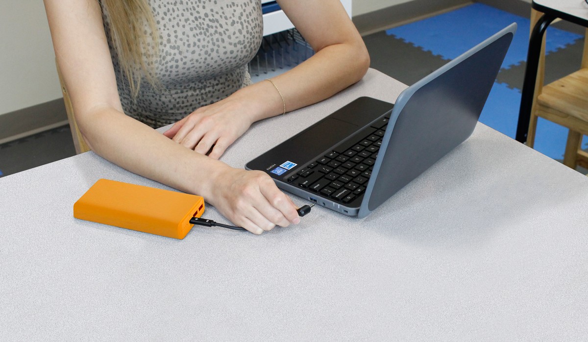 Active Charge Power Banks in “school bus yellow” are easily differentiated from other devices. With 65W output, they provide ample power to student devices so they can charge while they work.