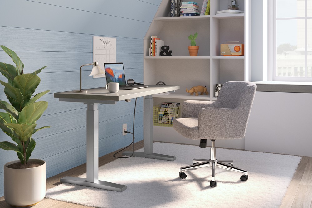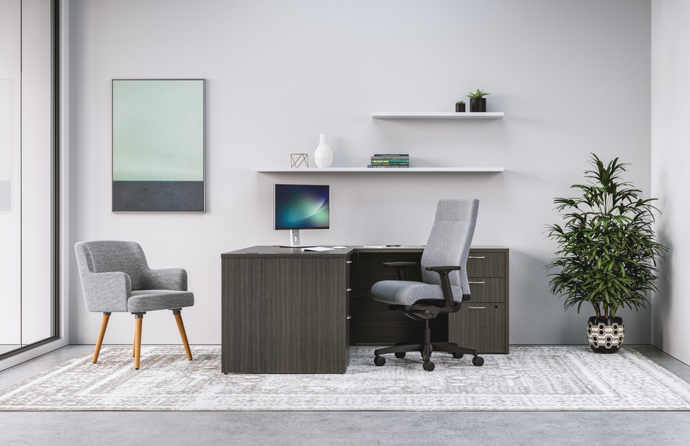 This cool twist on the traditional guest chair puts the comfort of a lounge chair right on top of a traditional four-leg base. The hardwood legs and the neutral Gray fabric not only create a truly modern aesthetic, they easily match just about any surrounding.