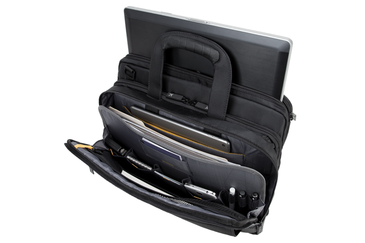 The Targus 15.6” Revolution Checkpoint-Friendly Briefcase has a smart zip-down workstation with dedicated compartments for all of your gadgets and gear, plus a tablet pocket with plush scratch-resistant lining. This Revolution case also makes it easier to zip through airport security with its patented checkpoint-friendly design, as it stays in the case for clear X-ray scanning.