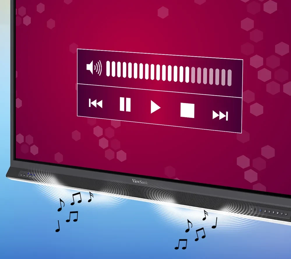 An integrated front-facing soundbar and subwoofer delivers incredible audio to every corner of the classroom.