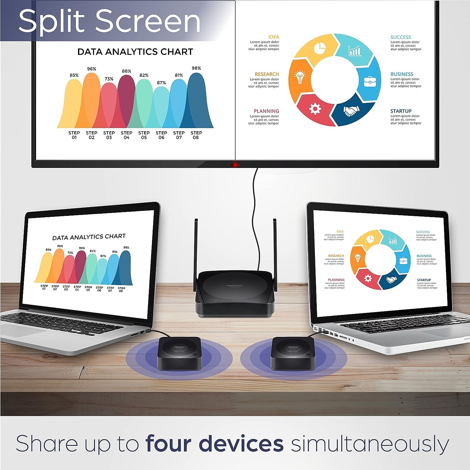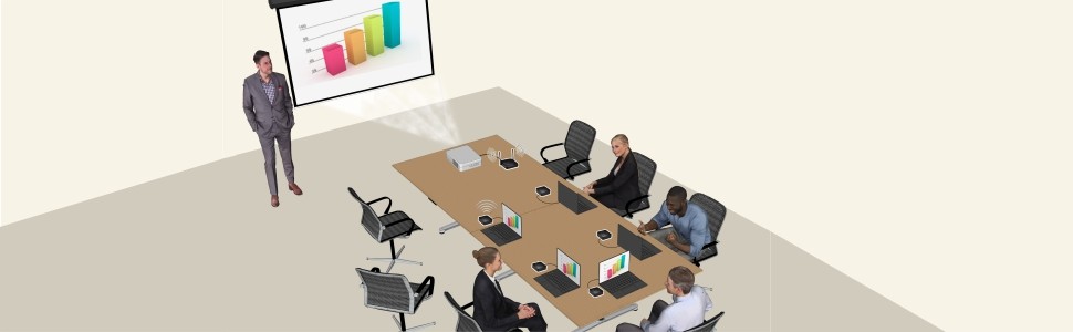 This wireless screen sharing solution supports up to 4 screens displayed concurrently