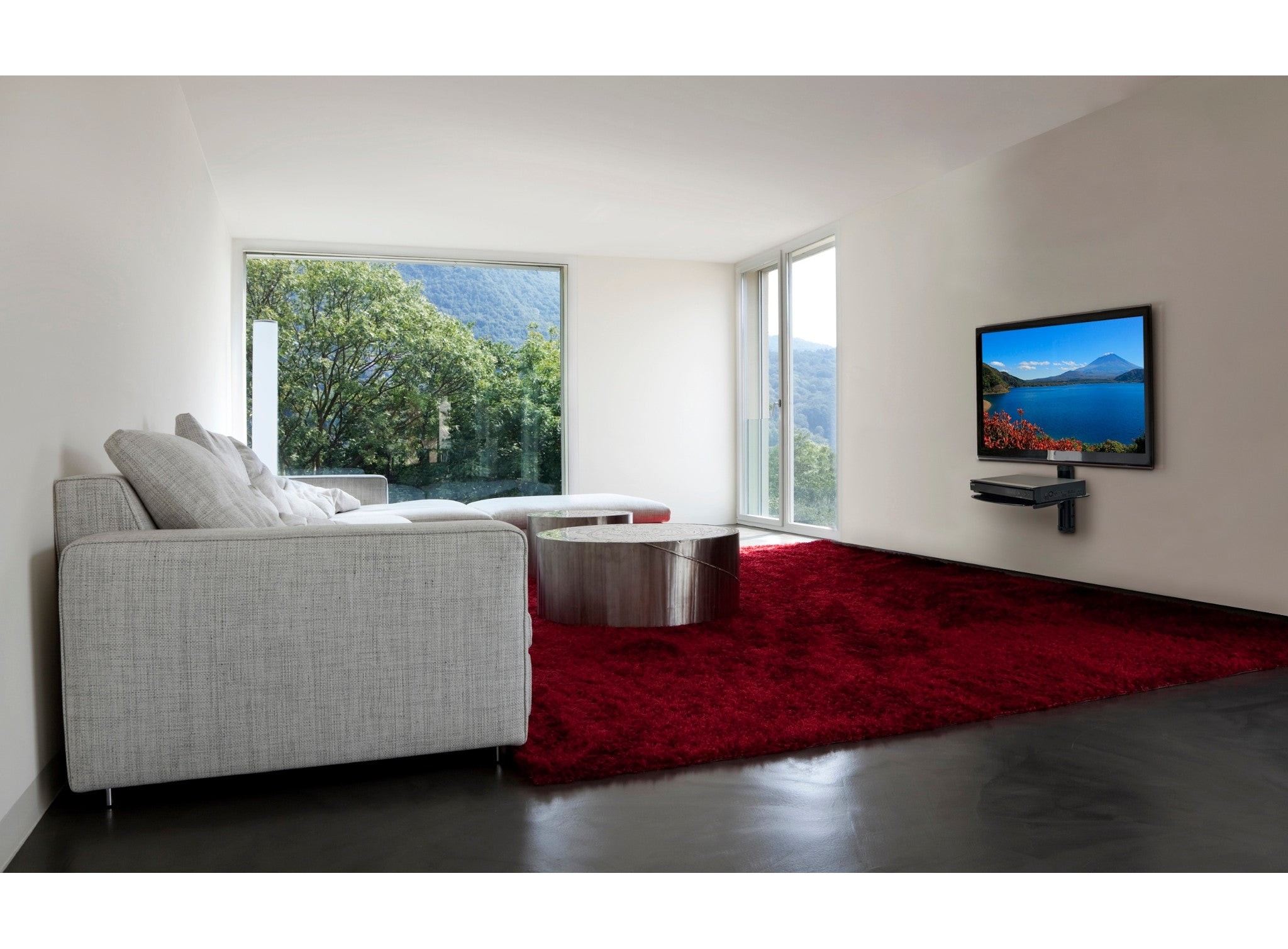 People gravitate toward flat panel displays for their aesthetics but once mounted the question of where to place the audio visual components becomes troubling. This AV Wall Shelf provides an elegant solution. The modern, sleek glass shelving blends in with the décor of a room enhancing the image so carefully cultivated by the consumer. Its ability to organize and center AV components directly above or below the television transforms any room by creating a trendy ambiance.