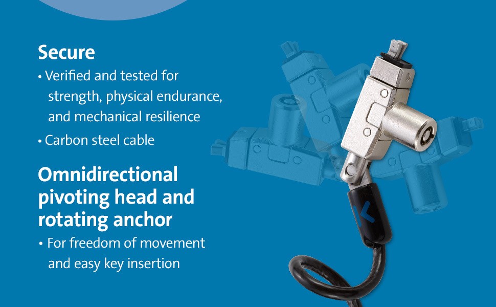 Slim lock head allows ultra-thin and 2-in-1 laptops to lie flat and stable
